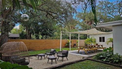 Apresentando vista do jardim, -Disco Bungalow- One third mile to FTL Marine Center apresenta acomodações com pátio e chaleira, a cerca de 5,4 km de Museu de Arte de Fort Lauderdale. O alojamento tem jardim, comodidades para churrascos, acesso Wi-Fi gratuito e estacionamento privado gratuito.