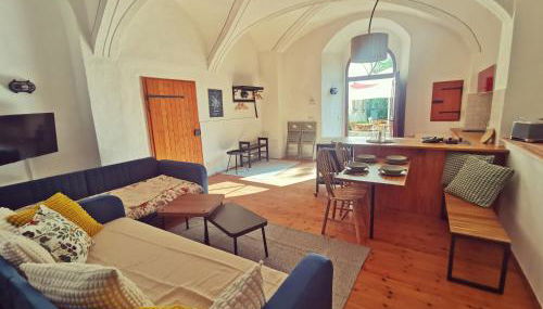 Este apartamento tem 1 quarto, uma sala de estar, uma cozinha totalmente equipada com frigorífico e máquina de café, e 1 casa de banho com chuveiro e produtos de higiene pessoal gratuitos. Toalhas e roupa de cama são providenciadas neste apartamento.