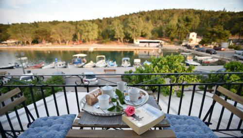 Apresentando vista da cidade, Kallisti the house at the port dispõe de acomodações com um terraço e varanda, a cerca de 1,9 km de Praia Super Kalafatis. Com vistas do mar e da montanha, este apartamento também tem acesso Wi-Fi gratuito.