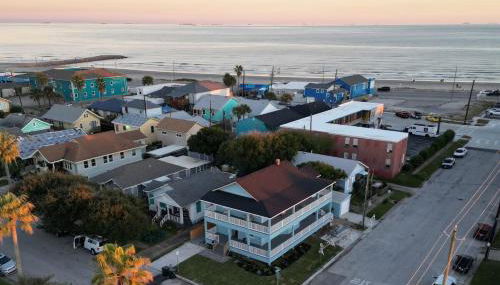 Top Deck Ocean View - 2 Br Ocean Views & Hot Tub, um alojamento com um jardim e um terraço, localiza-se em Galveston, a menos de 1 km de Pleasure Pier, 6,1 km de Parque Aquático Schlitterbahn Galveston Island e a 6,2 km de Moody Gardens. O alojamento com ar condicionado está a 8 minutos a pé de Seawall Urban Park, e os hóspedes beneficiam de estacionamento privado disponível no local e acesso Wi-Fi gratuito.