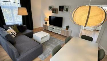 Este apartamento tem 2 quartos, uma sala de estar, uma cozinha totalmente equipada com frigorífico e máquina de café, e 1 casa de banho com chuveiro. Toalhas e roupa de cama são providenciadas neste apartamento.