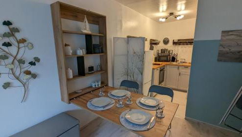 Este apartamento tem 1 quarto, uma sala de estar, uma kitchenette totalmente equipada com frigorífico e máquina de café, e 1 casa de banho com chuveiro e um secador de cabelo. Toalhas e roupa de cama são providenciadas neste apartamento.