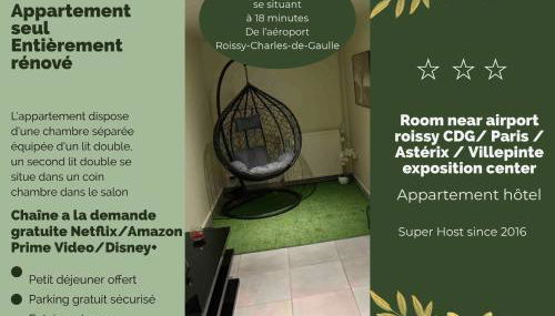 Appartement cosy proche Roissy CDG Astérix DisneyLand Paris
