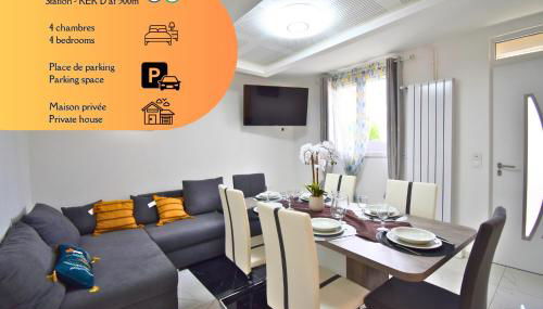 A cerca de 18 km de Estádio de França e 21 km de Gare de l'Est, L'Écrin de Goussainville apresenta acesso Wi-Fi gratuito e um terraço. O alojamento está a 23 km de Sala de Espectáculos La Cigale e 24 km de Estação de Metro Pigalle.