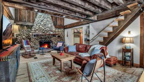 Rustic Cabin Wood Fireplace & Large Deck