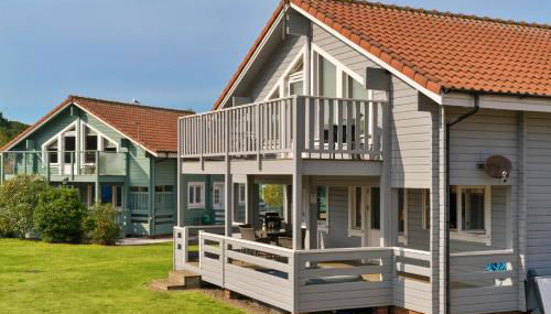 Este chalé com uma varanda e vista do lago tem 2 quartos, uma sala de estar, uma televisão de ecrã plano, uma cozinha equipada com frigorífico e máquina de lavar louça, e 2 casas de banho com chuveiro. Toalhas e roupa de cama são providenciadas neste chalé.