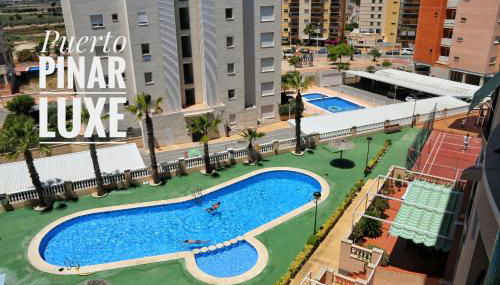 Apresentando uma piscina exterior, um jardim e um terraço, Puerto Pinar Luxe fornece acomodações em Guardamar del Segura com acesso Wi-Fi gratuito e vista da cidade.