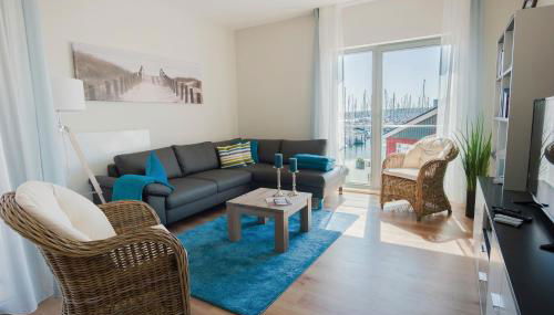 Ostsee - Appartement Nr 75 "Beletage" im Strand Resort situa-se em Heiligenhafen, apenas a 3 minutos a pé de Praia de Heiligenhafen, e dispõe de acomodações com vista do mar, acesso Wi-Fi gratuito e estacionamento privado gratuito. Com vista do lago, este alojamento apresenta uma varanda.