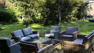Em Hoppegarten, apenas a 17 km de Galeria East Side, Remise an der Rennbahn - 30 Minuten zum Alexanderplatz und doch im Grünen fornece acomodações com um jardim, um salão partilhado, comodidades para churrascos e acesso Wi-Fi gratuito.