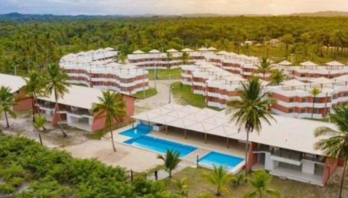 Em Ilhéus, apenas a 22 km de Terminal Rodoviário de Ilhéus, Apto em Ilhéus - Pé na areia apresenta acomodações em frente à praia com uma piscina exterior, um jardim, uma área de praia privada e acesso Wi-Fi gratuito.