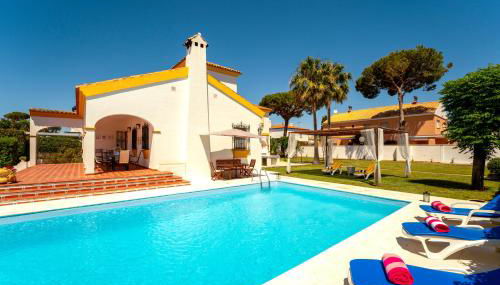 Apresentando vista da piscina, Villa La Caleta - Private Pool and Garden fornece acomodações com uma piscina exterior, um terraço e um campo de ténis, a cerca de 4 minutos a pé de Playa de Islantilla. O alojamento apresenta uma piscina privada, jardim, comodidades para churrascos, acesso Wi-Fi gratuito e estacionamento privado gratuito.