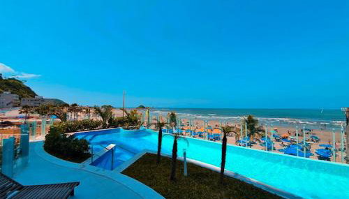 Apresentando um jardim, piscina exterior e vista da cidade, APARTAMENTO PÉ NA AREIA localiza-se em Itanhaém. Com vista do mar, este alojamento fornece um terraço.