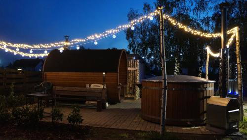 Drewniany Zakątek z sauną i jacuzzi oferece uma variedade de comodidades de bem-estar, incluindo sauna e banheira de hidromassagem.
