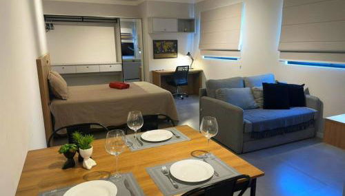 Este apartamento com ar condicionado dispõe de 1 quarto, uma televisão de ecrã plano, uma área de refeições, uma cozinha com frigorífico e uma sala de estar. Toalhas e roupa de cama são providenciadas neste apartamento.