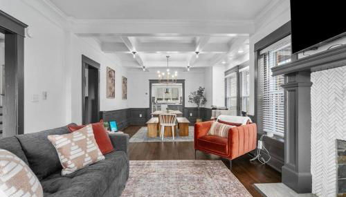 Em Kansas City, a 3,1 km de Union Station Kansas City, 4,5 km de Arena Sprint Center e 4,9 km de Centro de Exposições de Kansas City, Walnut Remodeled Modern 5BR Home Walkable King Bed fornece acomodações com uma varanda e acesso Wi-Fi gratuito.
