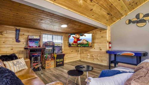 A 21 km de The Grand Majestic Theater, Country Cabin, Fenced area for pets, Hot Tub, Arcade!!! apresenta acomodações com banheira de hidromassagem em Kodak.