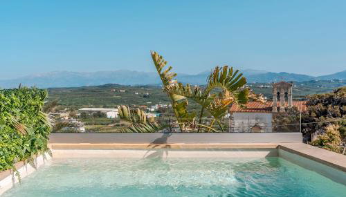 Apresentando uma piscina exterior, um jardim e um terraço, Disegno Villa - Rooftop Pool apresenta acomodações em Kolymvari com acesso Wi-Fi gratuito e vista da cidade.