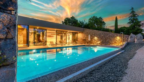 Luxury Jerini Estate localiza-se em Krk e providencia um terraço com vista da piscina e do jardim, assim como piscina exterior aberta todo o ano, sauna e banheira de hidromassagem.