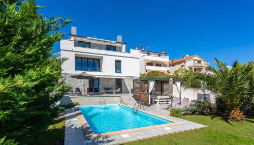 Apresentando bicicletas gratuitas, uma piscina exterior sazonal e um jardim, Sun & Sea Villa with a view dispõe de acomodações em Krk com acesso Wi-Fi gratuito e vista da cidade.