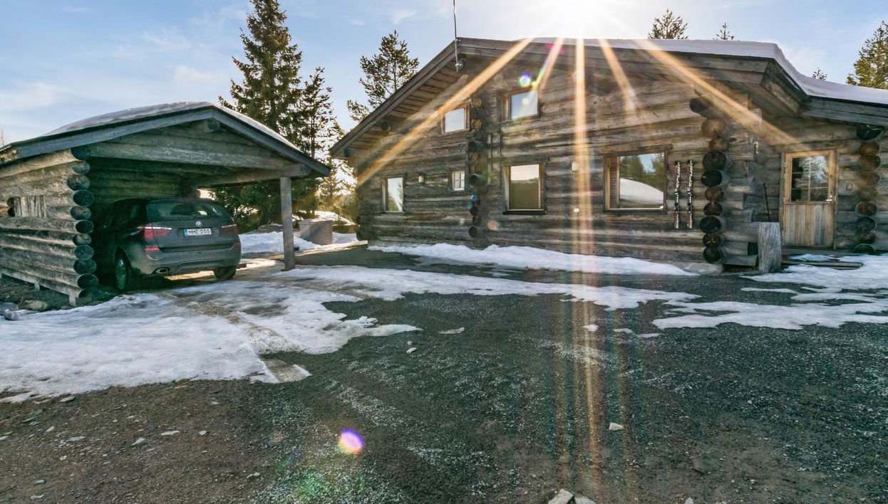 25km north of Kuusamo, Vuosseli (Eastern Ruka) 900m. High level log cottage, built in 2003, bedroom 1: 2 bunk beds, bedrooms 2-3: 2 beds, 2 alcoves without door on loft: 2 beds, combined kitchen/living room, electric sauna.
