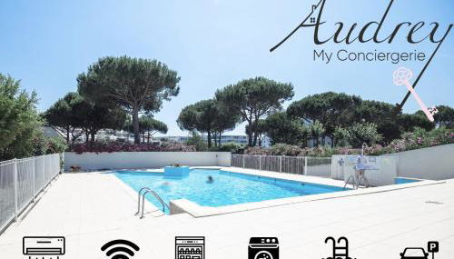 Chez Hervé - Charmant appartement avec piscine et parking encontra-se em La Grande-Motte e fornece acomodações com piscina privada, varanda e vista do jardim.