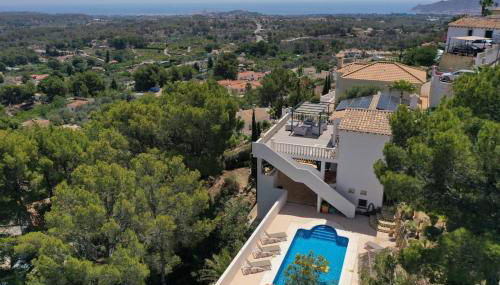 Apresentando uma piscina exterior, um jardim e um bar, Villa Santorini Costa Blanca apresenta acomodações em La Nucía com acesso Wi-Fi gratuito e vista do mar. O alojamento tem uma piscina privada, comodidades para churrascos e estacionamento privado gratuito.