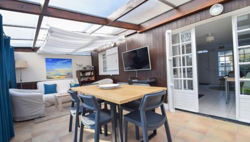 Le Chalet Ma Neizh - 4 pers avec jardin, um alojamento com um jardim e comodidades para churrascos, situa-se em La Richardais, a 1,9 km de Parque de Port-Breton, 2,8 km de Marina de Dinard e a 3,1 km de Casino Barrière de Dinard. O alojamento com ar condicionado está a 6 minutos a pé de Plage du Port la Vicomte, e os hóspedes beneficiam de estacionamento privado disponível no local e acesso Wi-Fi gratuito.