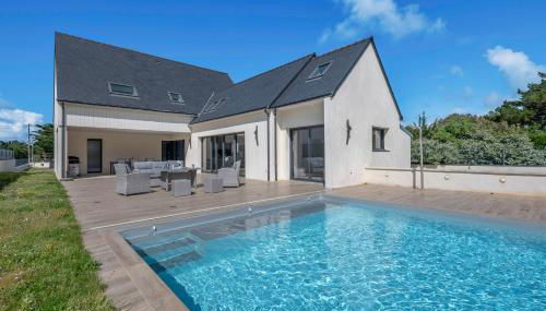 Apresentando vista do jardim, Piscine - 10 personnes - 100m de la plage apresenta acomodações com varanda e chaleira, a cerca de 3 minutos a pé de Praia Ker Elisabeth. O alojamento apresenta uma piscina privada, jardim e estacionamento privado gratuito.