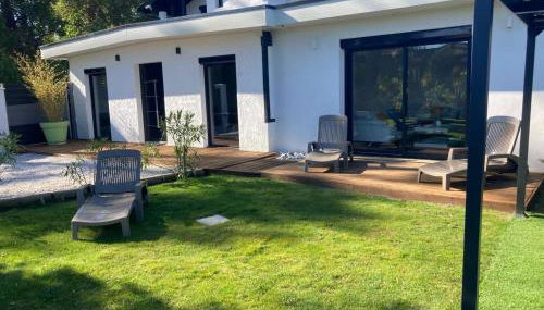 Em Labenne, a 7 minutos a pé de Praia Central e 30 km de Estação Ferroviária de Biarritz La Négresse, villa bord de mer 400 M de la plage fornece acomodações com acesso Wi-Fi gratuito, ar condicionado e um terraço. O alojamento apresenta uma piscina privada, jardim e estacionamento privado gratuito.