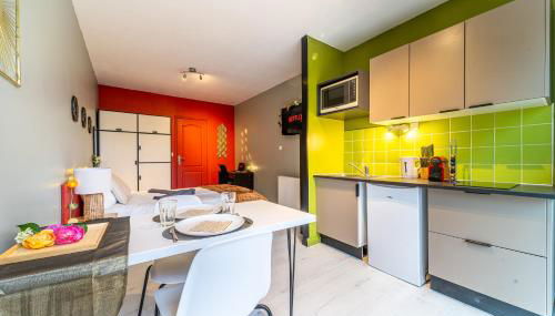 Este apartamento dispõe de 1 quarto, cozinha com um frigorífico e um micro-ondas, uma televisão de ecrã plano, uma área de estar e 1 casa de banho com chuveiro. Toalhas e roupa de cama são providenciadas neste apartamento.