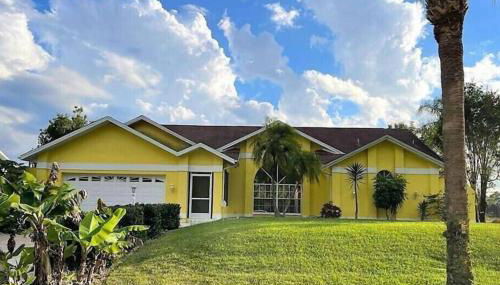 Em Lehigh Acres, a 22 km de JetBlue Park e 32 km de Lee County Sports Complex Hammond Stadium, The Yellow Home amazing lake view dispõe de acomodações com acesso Wi-Fi gratuito, ar condicionado, uma piscina exterior e um terraço. O alojamento tem uma piscina privada, jardim e estacionamento privado gratuito.
