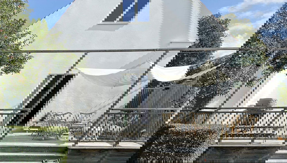 Sinta-se em casa nesta casa de férias com mobília individualizada. Casa de banho com polibã.