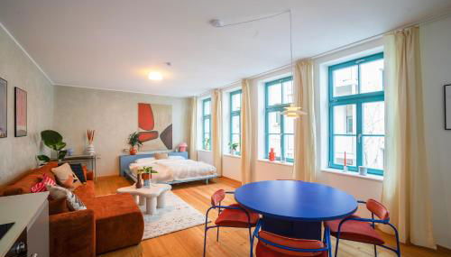 Disponibilizando um jardim e acesso Wi-Fi gratuito, Loft Apartment in Hinterhof-Remise nähe Karl-Heine encontra-se na área de Altwest, em Leipzig, a 4,7 km de Estação Central de Leipzig.