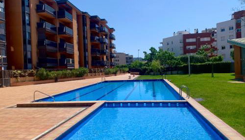 Apresentando uma piscina exterior, um jardim e uma área de praia privada, Bright & spacious 2BR in Fenals with pool view fornece acomodações em Lloret de Mar com acesso Wi-Fi gratuito e vista da cidade.