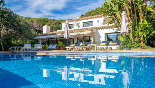 Villa Les Oliveres Piscina Privada Vistas Mar Aire Acondicionado situa-se em Lloret de Mar, a 15 minutos a pé de Praia de Lloret de Mar e 4,8 km de Parque Aquático de Lloret de Mar, e dispõe de acesso Wi-Fi gratuito, um jardim e ar condicionado. O alojamento também tem uma piscina privada.
