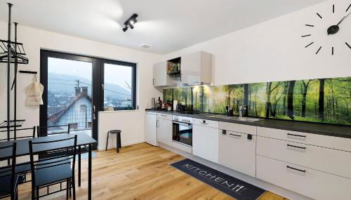 Este apartamento com um terraço e vista da montanha tem 1 quarto, uma sala de estar, uma televisão, uma cozinha equipada com máquina de lavar louça e forno, e 1 casa de banho com chuveiro. Toalhas e roupa de cama são providenciadas neste apartamento.