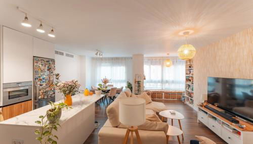Este apartamento com ar condicionado tem 3 quartos, uma sala de estar, uma cozinha totalmente equipada com frigorífico e máquina de café, e 2 casas de banho com chuveiro e um secador de cabelo. Uma televisão de ecrã plano está disponível.
