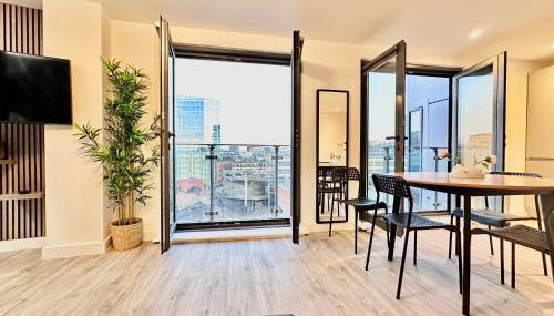 City centre, Top floor apartment, Two balconies encontra-se em Manchester, a 3 minutos a pé de Chetham's Library, e apresenta acomodações com um terraço, acesso Wi-Fi gratuito e serviço de quartos.