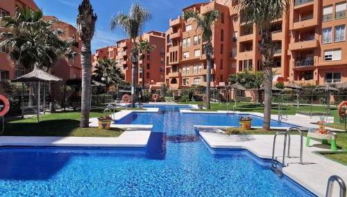 Apresentando uma piscina exterior sazonal, um jardim e um terraço, NFN Apartment Los Hidalgos Golf apresenta acomodações em Manilva com acesso Wi-Fi gratuito e vista do mar.