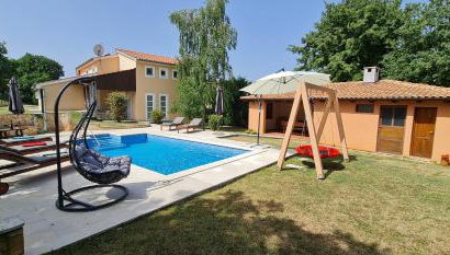 Sunny Garden Villa with Pool localiza-se em Loborika, a 8,6 km de Anfiteatro de Pula e 41 km de Basílica de Santa Eufémia em Rovinj, e dispõe de uma piscina exterior sazonal e ar condicionado. O alojamento apresenta uma piscina privada, jardim, comodidades para churrascos, acesso Wi-Fi gratuito e estacionamento privado gratuito.