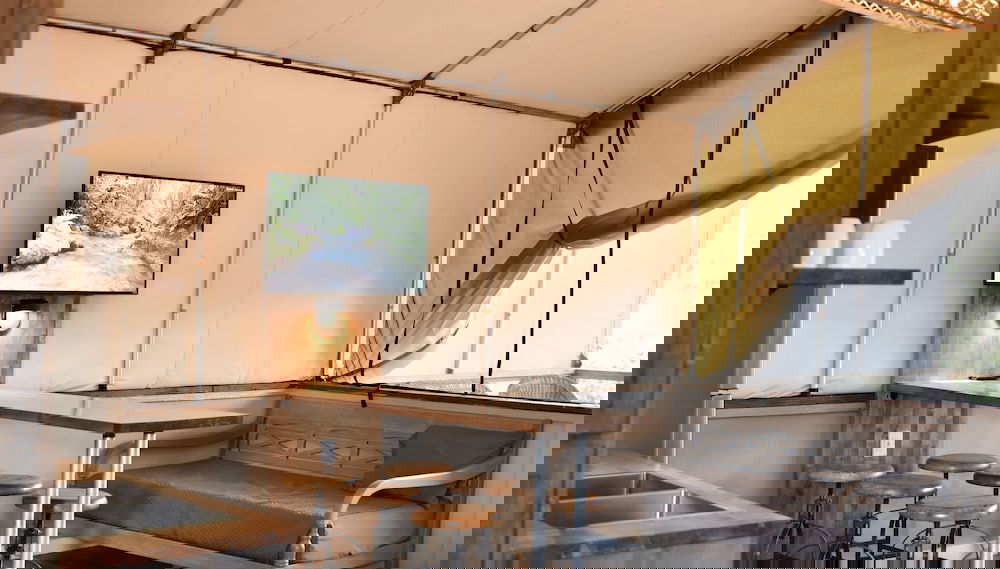 Sinta-se em casa nesta cabana com decoração personalizada, cozinha, um frigorífico/congelador grande e um forno. A unidade dispõe de uma varanda ou pátio interior com mesa e cadeiras. Para preencher os seus serões, tem à sua disposição um televisor de ecrã plano de 43 polegadas com canais digitais, além de internet sem fios, para estar sempre contactável. As comodidades incluem um micro-ondas e uma cafeteira/bule.