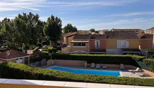 Apresentando vista da piscina, Appartement Marseillan Plage apresenta acomodações com uma piscina exterior sazonal, um terraço e um campo de ténis, a cerca de 3 minutos a pé de Praia Rieu. O alojamento tem uma piscina privada, jardim e estacionamento privado gratuito.