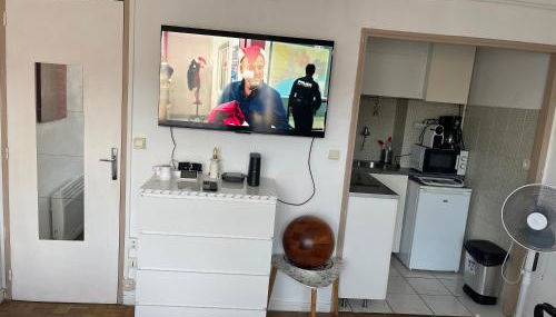 Este apartamento tem uma televisão de ecrã plano. A kitchenette dispõe de um frigorífico, um micro-ondas e uma placa de fogão, assim como máquina de café e chaleira.