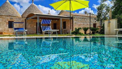 Apresentando vista da piscina, Trulli Pax Animi fornece acomodações com uma piscina exterior sazonal e pátio, a cerca de 40 km de Catedral de Taranto. O alojamento apresenta uma piscina privada, jardim, comodidades para churrascos, acesso Wi-Fi gratuito e estacionamento privado gratuito.