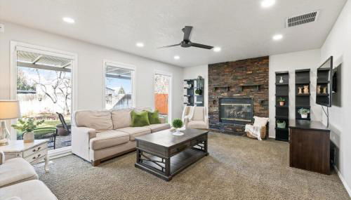 Em Meridian, a 5,5 km de Roaring Springs Water Park (parque aquático), 10 km de Arena Ford Idaho Center e 18 km de Boise Art Museum, 5BR Meridian Retreat Fire Pit BBQ Sleeps 12 dispõe de acomodações com um pátio e acesso Wi-Fi gratuito.