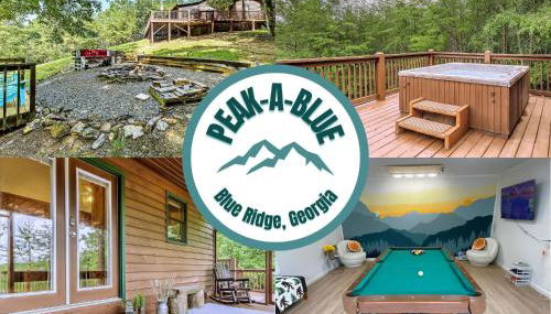 Apresentando um jardim, Peak-a-Blue Cabin - Watch Movies from Hot Tub, Mountain View, Bigfoot Bunker Game Room, Fire Pit, Oversized Deck, Screened-in Porch fornece acomodações em Mineral Bluff com acesso Wi-Fi gratuito vista da montanha. Este alojamento dispõe de uma mesa de bilhar, pingue-pongue e estacionamento privado gratuito.