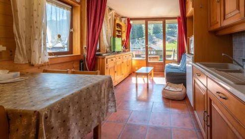 Este apartamento com uma varanda e vista da montanha tem 1 quarto, uma sala de estar, uma televisão, uma cozinha equipada com frigorífico e forno, e 1 casa de banho com chuveiro.