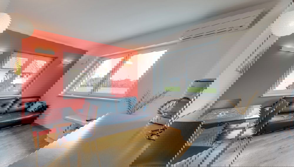 Sinta-se em casa neste apartamento com ar condicionado, cozinha, um frigorífico e um forno. Para preencher os seus serões, tem à sua disposição um televisor de ecrã plano com canais digitais, além de internet sem fios, para estar sempre contactável. As comodidades incluem um micro-ondas e uma cafeteira/bule.