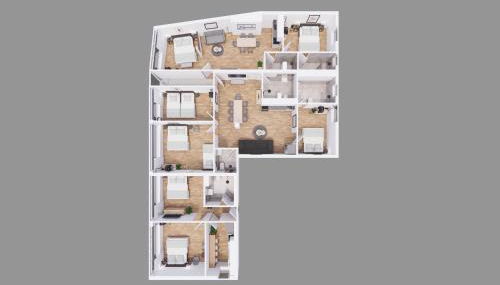 Este apartamento tem 7 quartos, uma sala de estar, uma cozinha totalmente equipada com frigorífico e máquina de café, e 6 casas de banho com chuveiro e produtos de higiene pessoal gratuitos. Toalhas e roupa de cama são providenciadas neste apartamento.
