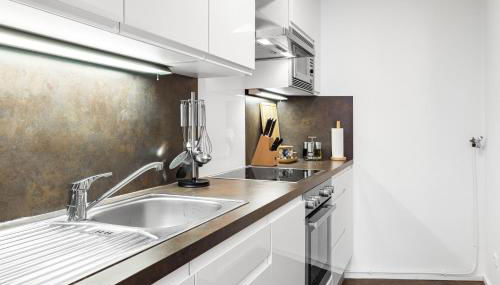 Este apartamento inclui 1 quarto, cozinha com um frigorífico e uma máquina de lavar louça, uma televisão de ecrã plano, uma área de estar e 1 casa de banho com chuveiro. Toalhas e roupa de cama são providenciadas neste apartamento.